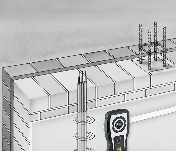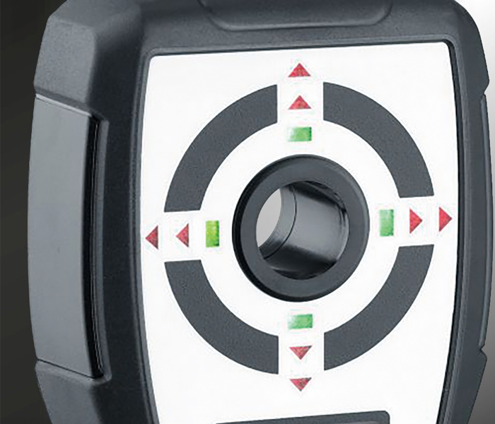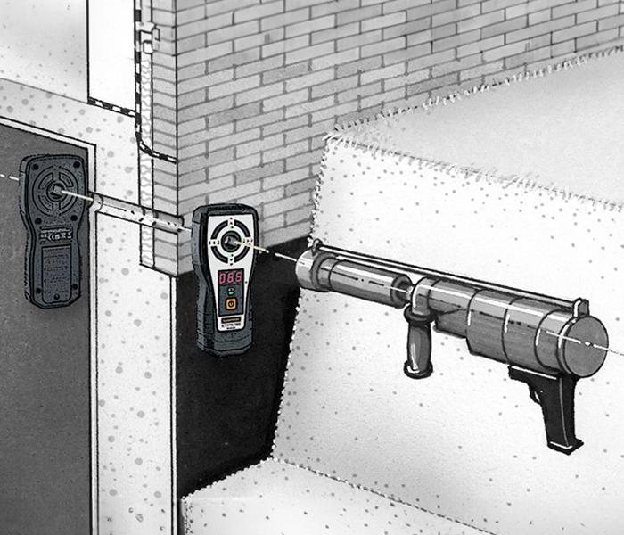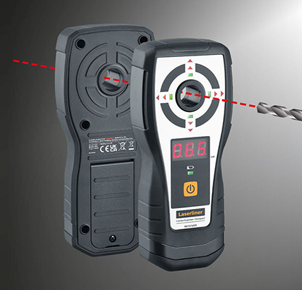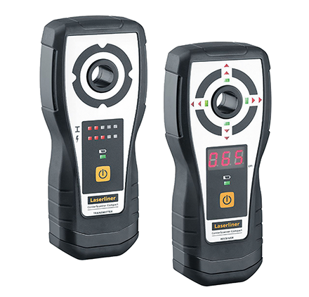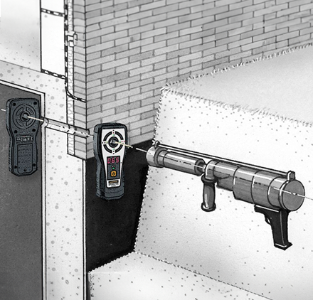 終点側に送信機を設置し、壁を隔てた反対側に受信機を当てると受信機側の位置確認LEDインジケーターが点灯。