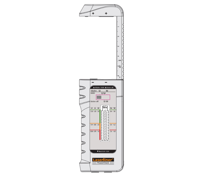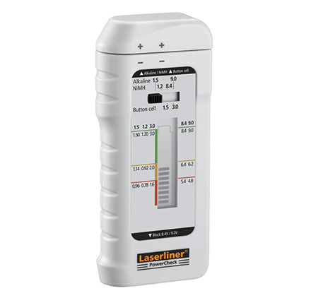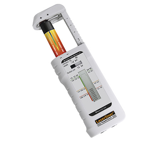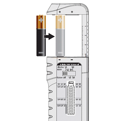 単1~単4のような筒型、9Vの角型、ボタン型といった一般的な電池の残量を瞬時にチェック。